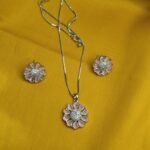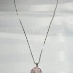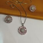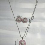 Elevate your style with this exquisite jewellery set featuring a pendant necklace and a pair of matching earrings. The centrepieces are delicate floral motifs crafted from lustrous pink gemstones, surrounded by sparkling rhinestones that catch the light beautifully. The pendant hangs gracefully from a sleek silver-toned chain, while the earrings add a touch of elegance to any ensemble. This set is perfect for special occasions or to add a touch of glamour to your everyday look. Crafted with precision and attention to detail, it makes a thoughtful gift for a loved one or a well-deserved indulgence for yourself. Embrace timeless sophistication with this stunning jewellery set.