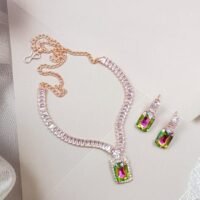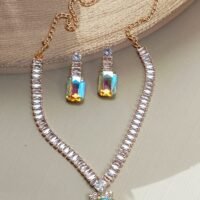 Mystic Cubic Zerconia Crystal Necklace and Earrings Set, Chain with Pendant, Fashion Jewellery