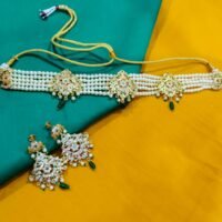 Elevate your ethnic style with the Shahi Pehnawa Lamination Ship/ Plastic Kada Chudi Set – a luxurious blend of tradition and elegance. Featuring stunning golden pearl peacock designs and sparkling Zirconia stone work, this bangle set brings a royal charm to your wrists. The set includes a combination of wide and thin bangles, with a bold centerpiece flanked by elegant slim bangles, creating a beautifully layered look. Crafted from durable plastic and designed to be water-resistant, this bangle set is perfect for daily wear as well as festive occasions. Celebrate the essence of Rajasthani culture .