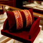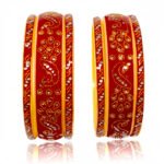•  TRADITIONAL DESIGN: Elegant red bangles featuring intricate golden paisley patterns and crystal embellishments for a classic Indian bridal look